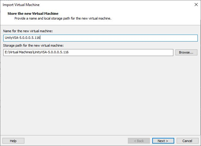 First, to start with the installation we need to download the UnityVSA-5.0.0.0.5.116.ova from Dell Technologies Software Downloads. After downloading the OVA file load your VMware Workstation Pro and look for File…Open and browse to the OVA file and a dialog box with the Import Virtual Machine wizard will be brought up.